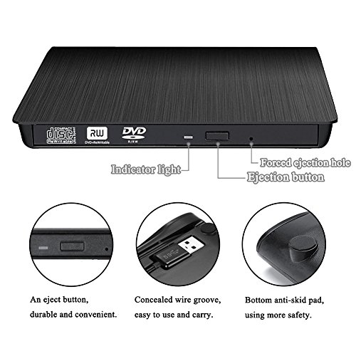 FASHION DESIGN: Embedded cable design, made with premium wire drawing material, enough fashionable and scratch-proof exterior. This CD/DVD driver is slim, lightweight, compact, portable.