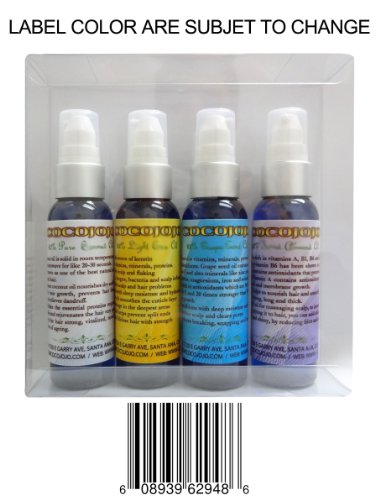 -. Title : Hair Treatment Kit 4 Bottles of Pure 2 Oz Emu, Grape Seed, Coconut, Neem Oil