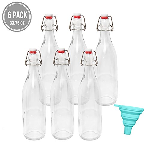 Perfect for Your Next Delicious DIY Project Do you crave homebrewed Kombucha? Love bottling your own handcrafted beer? Whether you're passionate about Kombucha, beer, whiskey, soda, cider, kefir, vinegar and oil, vanilla extracts or any other number of tasty bottled treats, these are the glass bottles for you! Our 1 liter glass bottles are made from thick, durable, reusable glass so you can use and reuse them for all your delicious projects. Super Strong Seal No need to waste time and money on cappers and caps. Each glass bottle comes with its own built in flip cap. Our flip caps are made from sturdy steel and thick rubber gaskets to provide you with an ultra-tight 100% leakproof seal that will keep the contents of your bottle fresh and delicious. Rubber seal can be removed for easy cleaning. Makes great Christmas gifts. 0 |