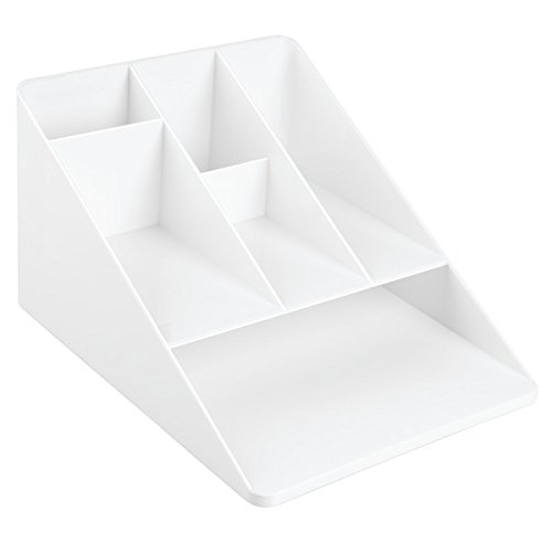 mDesign Office Supplies Desk Organizer for Scissors, Pens, Markers, Highlighters, Tape with Paper Tray - White