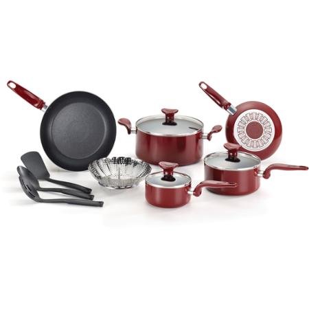 -. Title : T-fal Enjoy Nonstick 12-piece Cookware Set Red Aluminum Construction Oven-Safe