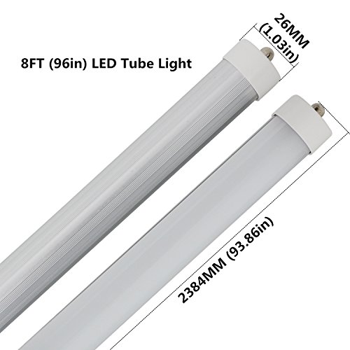 CNSUNWAY LIGHTING 8FT LED Bulb, T8 T10 T12 Single Pin Tube, 45W Dual-Ended Power, Ballast Bypass Required, 4800LM Super Bright 6000K Light With Frosted Cover (Pack of 4)