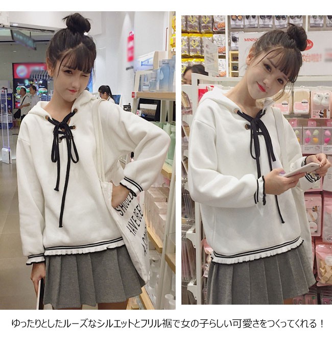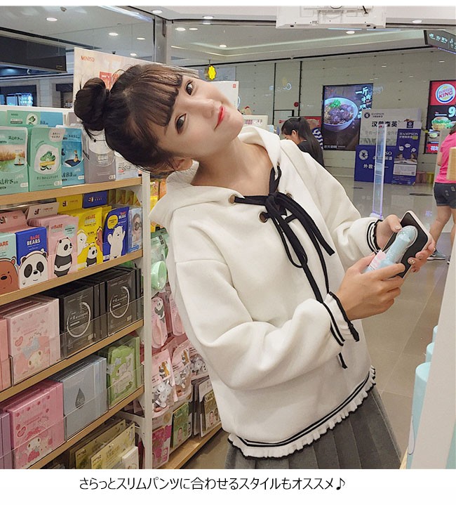 | 商品名 | スウェットパーカー セーラー風トップス 秋冬カットソー レディース パーカー フード付き ゆったり カジュアル 可愛い 2017秋新作 |