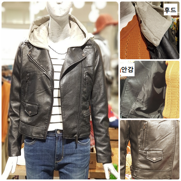 ▶ 인조가죽 라이더자켓 ▶ 최초가 149,000원 40% 할인가 ▶ 신축성 좋음 ▶ 후드탈착형 ▶ 봄,가을,초겨울 착용가능 ▶ 가죽전문점 세탁 ▶
