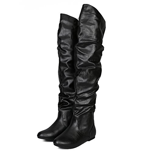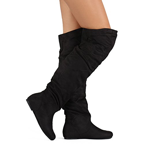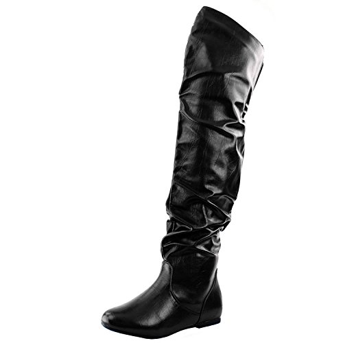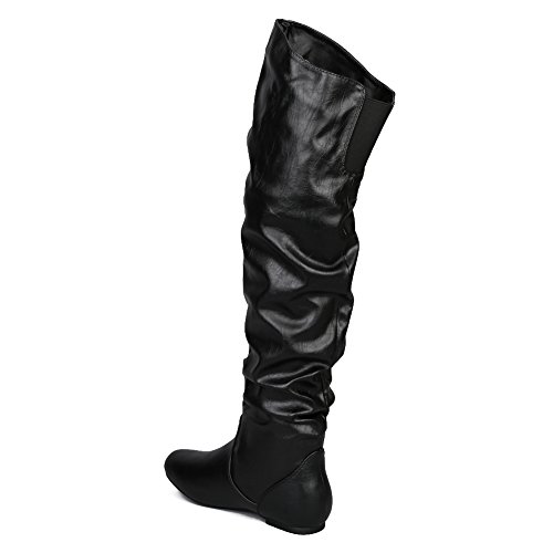 Get the attention that your deserved in this pair of slouchy thigh high boot! round toe front, slouchy shaft design, elastic gusset for better fitting and easy pull on style. These boots are finished with a comfortable elastic gusset on the back for easy comfort putting and taking off these boots.
