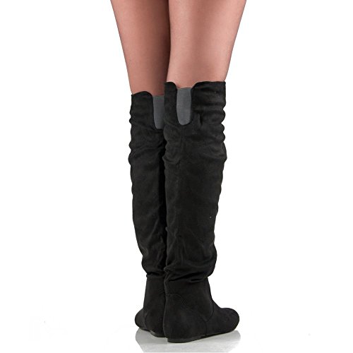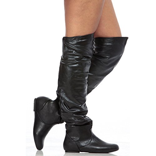 Over-the-knee boots in basic shades of vegan for a casual, daytime look that's perfect for activities like basketball games, cozy date nights,cosplay and grabbing coffee with friends.