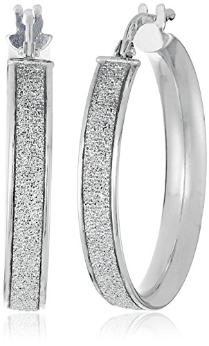 Sterling Silver Italian Rhodium Plated 20mm Sparkle Hoop Earrings
