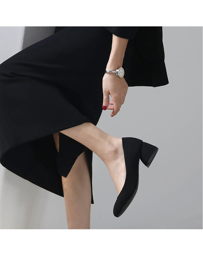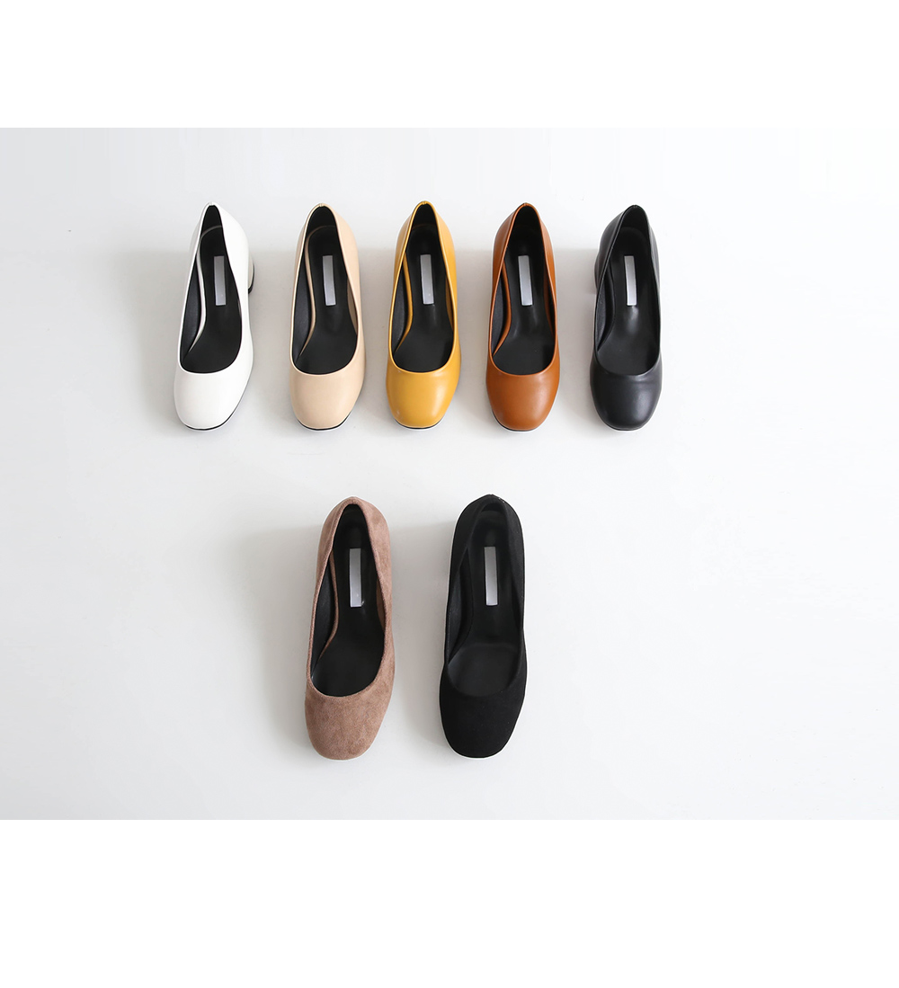 베이직하면서도 클린하게 라운드진 라인이 아름다운 인조소가죽의 5가지 컬러와 인조스웨이드의 2가지 컬러로 진행되는 데일리 미들굽 펌프스입니다.