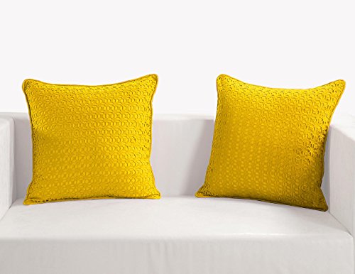 Even the finest quality sofa won't look its best if the cushions that are resting on it are shabby and drab. But that doesn't mean that you have to completely replace your current accent pillows to spruce up your sitting room. The Luxurious Hakoba Cotton 18" x 18" Embroidered Overlay for Sofa & Chair Cushion Covers allow you to completely change the look of any 18-inch by 18-inch throw pillows for the living room, family room, parlor or den, so you can save money while beautifying your decor.Sold in a pair, the Luxurious Hakoba Cotton 18" x 18" Embroidered Overlay for Sofa & Chair Cushion Covers are made from Canary Yellow Hakoba cotton and have an elegant machine embroidered lace overlay that makes their texture as lovely as their color. Heavy-duty matching piping travels around the outer edge of the cushion covers for a lovely finishing touch. Inside, over locked stitches ensure durability against wear and tear.