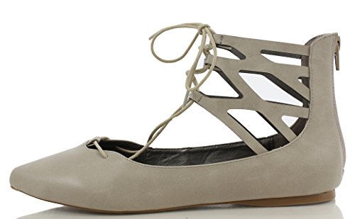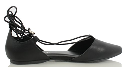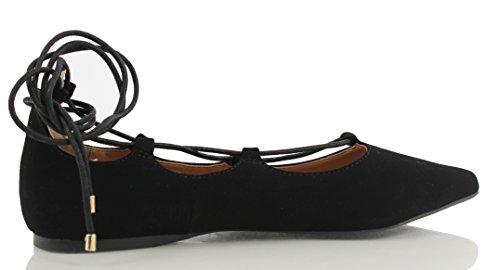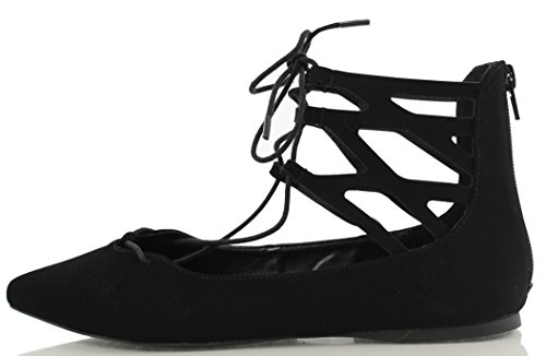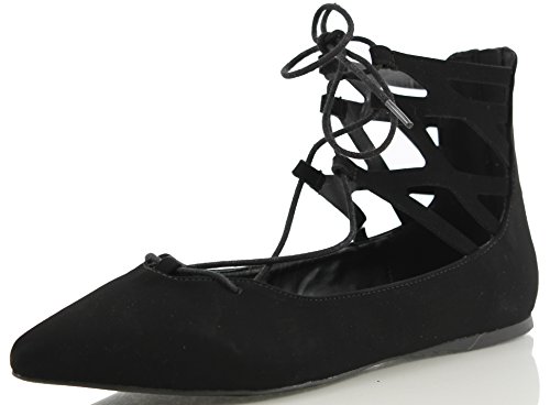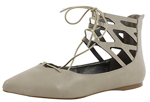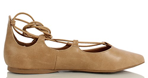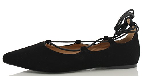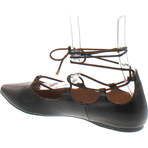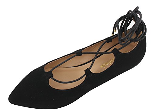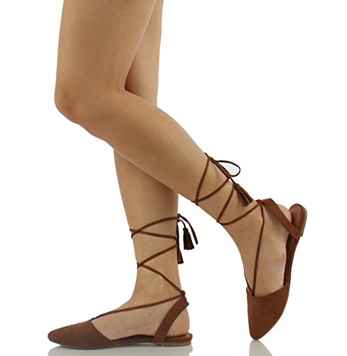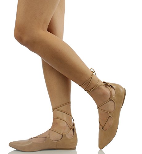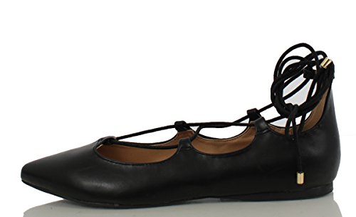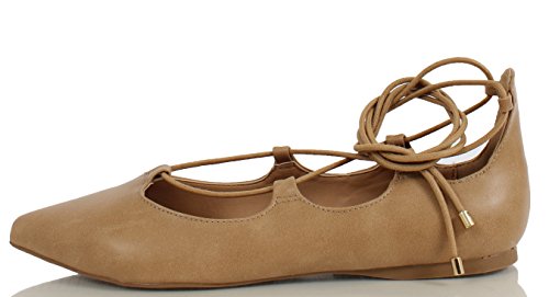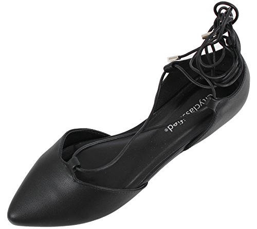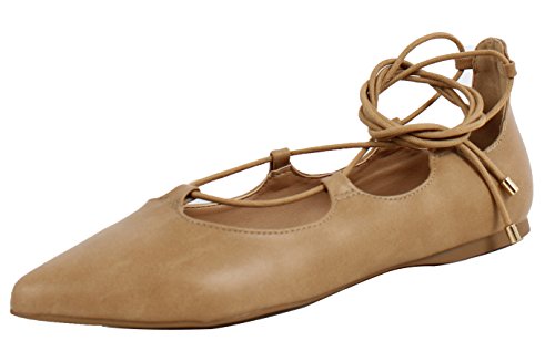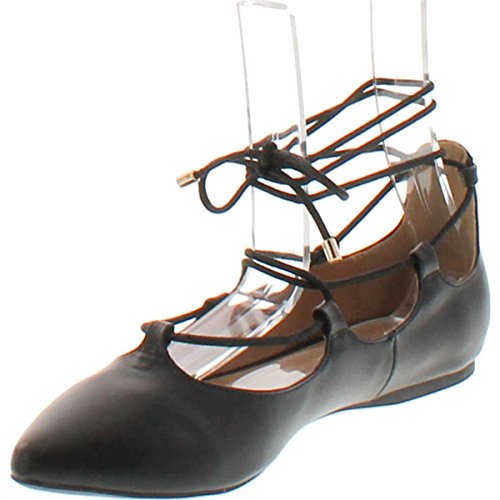 | City Classified Women's Heat Pointy Toe Faux Leather Lace Up Akle Wrap Flat Sandals |