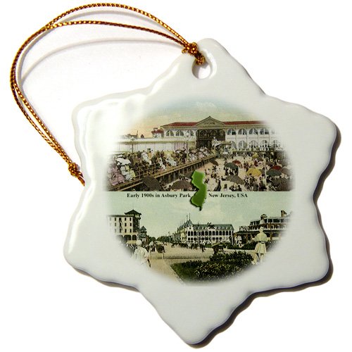 3dRose orn_47340_1 Asbury Park Early 1900S-Snowflake Ornament, 3-Inch, Porcelain