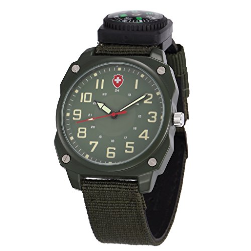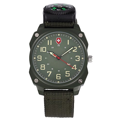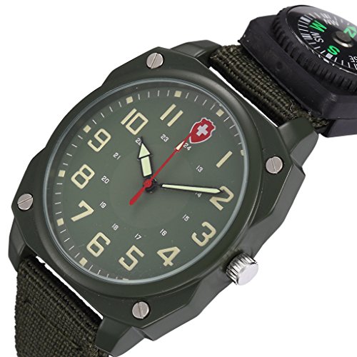 -. Title : Unendlich U Armee-Stil Armeegrün Nylon Gurt Quarzarmbanduhr Unisex Wasserdicht Armbanduhr mit Kompass für Reise/Wandern/Klettern/Expedition/Camping
