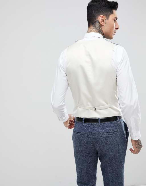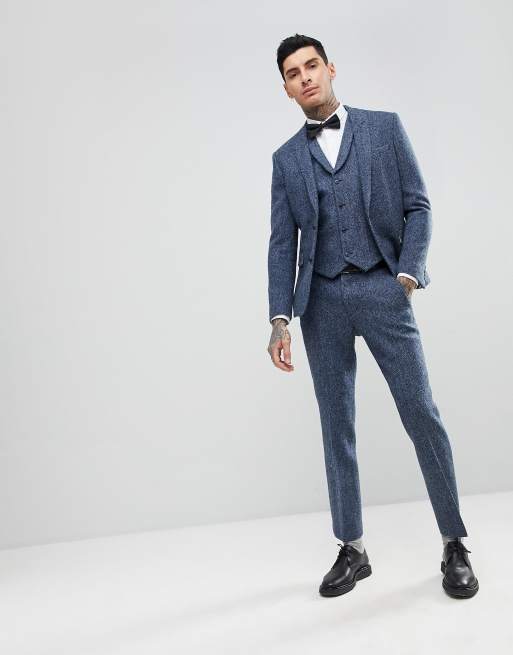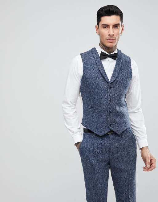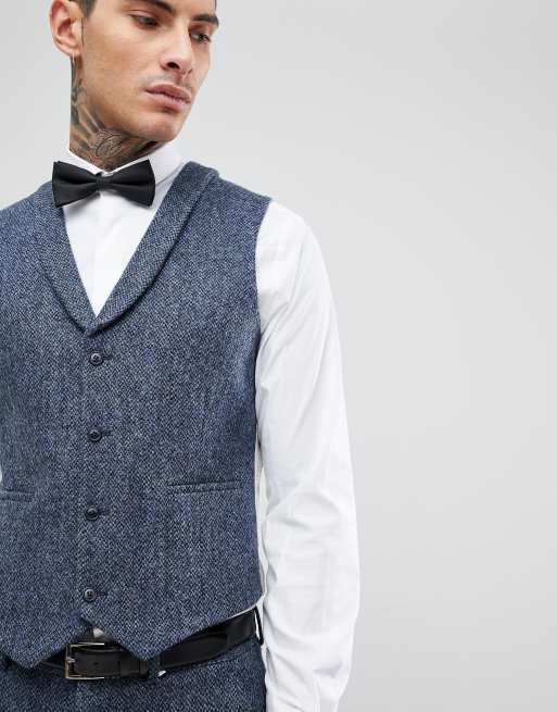 ASOS Slim Suit Vest in 100% Wool Harris Tweed In Blue Mini Check
