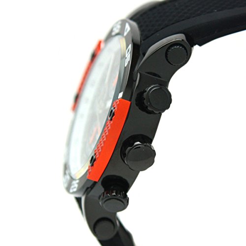차세대를 느끼게 하는 참신한디자인면서(도),침착성이 있는「하이 센스 손목시계」입니다.베젤과 인 다이얼의 컬러 액센트가 블랙 페이스에 광채,스톱워치,날짜 표시 등의 기능도 충실.붙였다 떼었다 하기 쉬어 손으로 피트 하는 실리콘 러버 벨트가 신선!