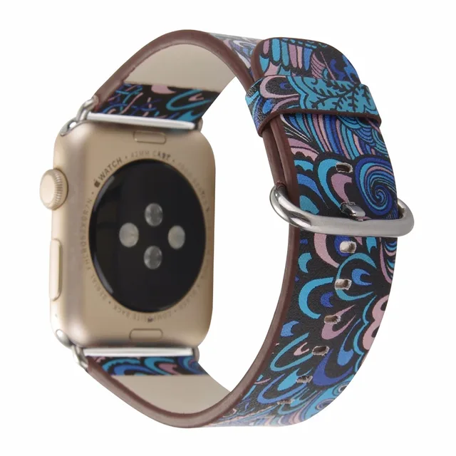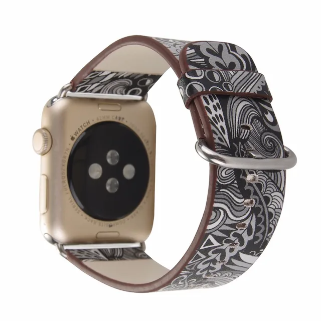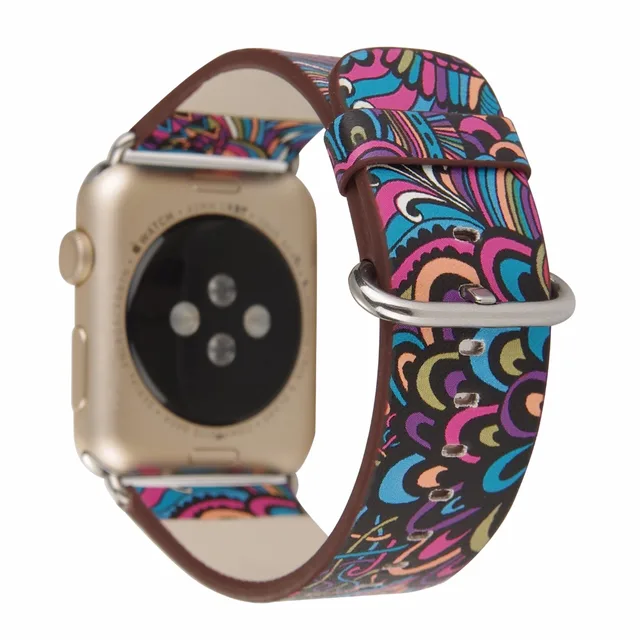 상품 내용 애플 시계 PU 가죽 밴드 스트랩 38/42 미리메터 시리즈 1/2 꽃 인쇄 빈티지 꽃 국가 민속 스타일의 디자인 벨트 I244.