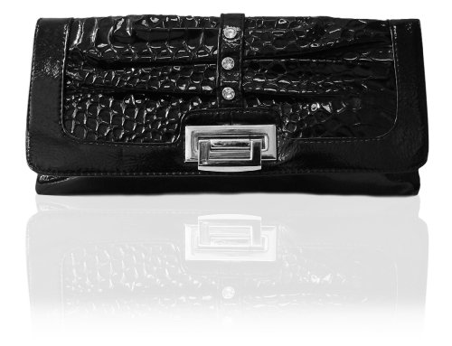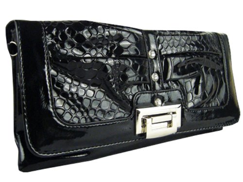 -. Brand : Peach Couture -. Department : womens -. Feature : New by Peach Couture (A registered trademark) / Fun and Fabulous Alligator P.R.Int Clutch with Rhinestones / Clutch features a buckle style clasp and detachable chain strap for a versatile look. / Available in five pretty colors! / Product Dimensions (IN): Clutch- Length: 12in Height: 6in Width: 1in -. ProductGroup : Shoes -. ProductTypeName : HANDBAG -. Title : Peach Couture SCARLETTE Alligator P.R.Int Clutch with Rhinestones and Chain Strap