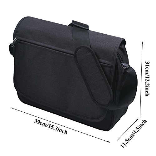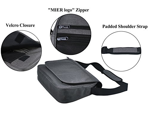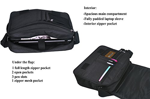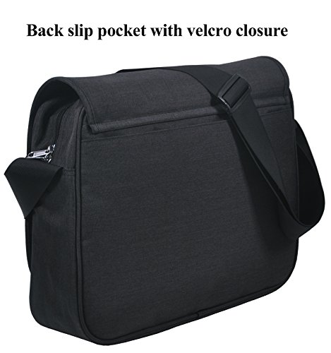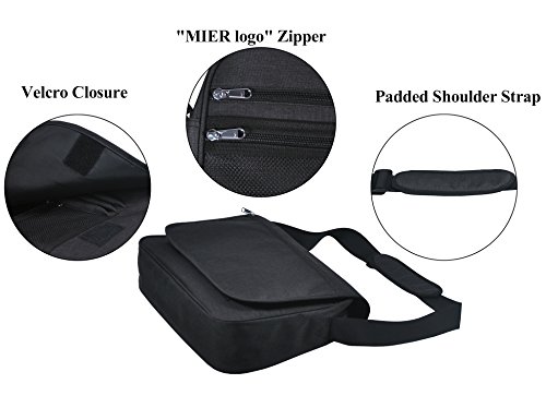 -. Feature : ApproP.R.Iately size----15" L x 12" H x 4"W, easily fit legal size folder full of documents, computer, cell phone, wallet, charger and lots of room left over without being bulky, lightweight but very sturdy / Multiple pocket---- Interior: 1 main zipper compartment with padded divider for tablet/laptop gives extra protection, a Velcro strap to hold the laptop in place, 1 smaller zipper pocket; Under the flap, there have 1 full length zipper pocket, 2 open pockets, 3 pen slots, 1 zipper mesh pocket; Outside: 1 out-front flap zippered pocket, 1 outer-rear Velcro pocket, both are full width of bag / Comfortable wear---- Adjustable shoulder with padded and 2" width strap let your shoulder stress-free; Shoulder drop 20"; Shoulder length 55" / Solemn Color---- Classicsolid black fabric, along the inside black lining, is great for business / Versatile----MIER computer bag is a multiuse crossbody bag, perfect for work, business, travelling, commuting, school, laptop protection and so on