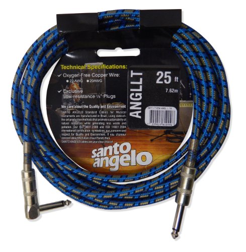 Santo Angelo ANGL L TX Straight to Right-Angle 1/4-Inch Plug Instrument Cable - 25 Feet