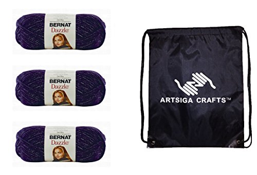 - Bundle includes 3-Pack Bernat Dazzle Yarn Purple Passion 161207-07002 with 1 Artsiga Crafts Project Bag