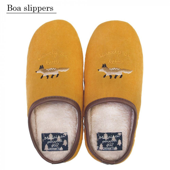 甲部の動物刺繍とコーデュロイ風の生地が冬らしいほっこりとしたスリッパです。