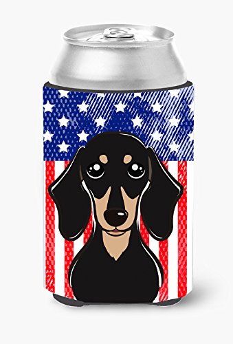 Caroline's Treasures BB2145CC American Flag And Smooth Black And Tan Dachshund Can Or Bottle Hugger, Multicolor