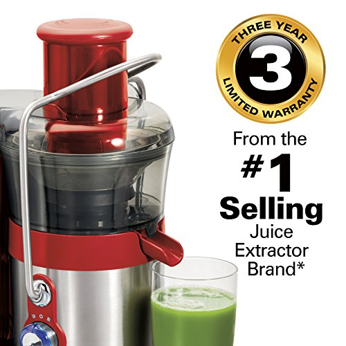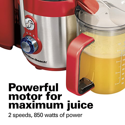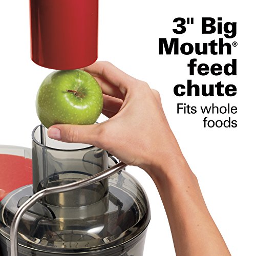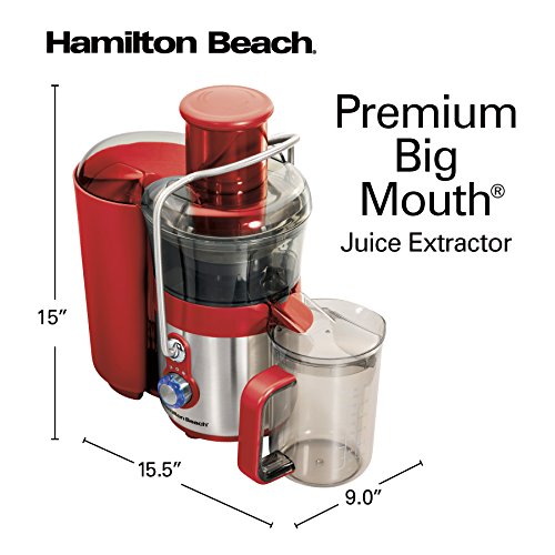 What's your favorite juice? whether it's Orange, apple or carrot, enjoying a fresh glass has never been easier. With its large chute and powerful motor, the Hamilton Beach big mouth plus 2 speed juice Extractor makes quick work of fruits and vegetables with little prep time required. And with a six-ounce juice container, there is no need to stop every few seconds to empty the container. Just juice and pour. When you're done, cleanup is a snap. All the parts are dishwasher safe and a cleaning brush is included for use in the strainer basket. The Hamilton Beach big mouth plus 2 speed juice Extractor is easy to assemble and store, but why put it away? with attractive Stainless Steel accents and a compact design, it may become a favorite countertop accessory.Feature