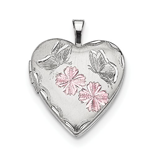 ICECARATS DESIGNER JEWELRY 925 STERLING SILVER ENAMELED FLOWERS BUTTERFLY HEART PHOTO PENDANT CHARM LOCKET CHAIN NECKLACE THAT HOLDS PICTURES