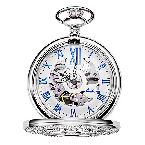 -. Title : Treeweto Hollow Mechanical Pocket Watch Silver Flower Vine Skeleton Roman Numerals