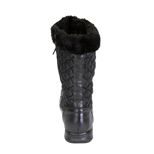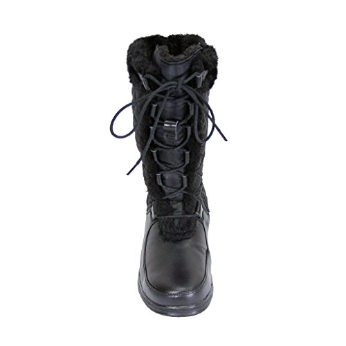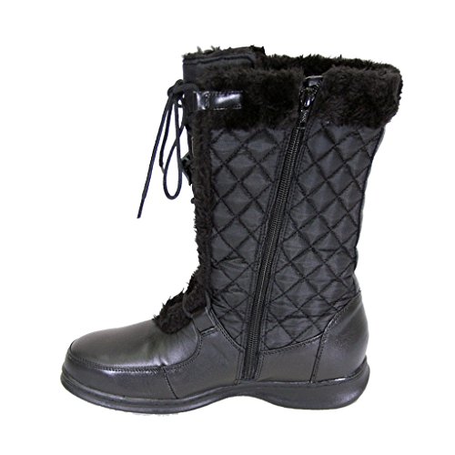 Binding : Apparel Product Description Peerage Gabby women's extra wide width nappa leather/nylon mesh 11" shaft height boots for those cold winter days. This ladies 1" low heel mid calf boot features a water resistant nylon mesh shaft, front lace adjustble calf, inner fleece lining, side zipper closure, and non slip outsole creating the perfect combination of warmth, style, and comfort. **About Manufacturer** Footwear International Corporation (FIC), located in Fairfield NJ, began its manufacturing and wholesale operations in 1977 and has since continued to supply quality footwear at competitive prices to consumers located across the globe. Specializing in wide width shoes, FIC's variety of trademark brands (24 Hour Comfort, Peerage, Floral, and Fuzzy) have become widely recognized for quality, fashion, comfort, and affordability. 0