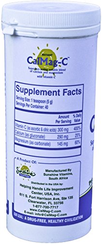 -. Binding : Health and Beauty -. Brand : Sunshine Vitamins -. EAN : 0700443324458 -. Feature : Essential Nutrients - Calcium Magnesium Vitamin C provides the necessary amount of calcium and magnesium. / Calcium For Healthy Nerve, Bone and Muscle Function and The Most Used Mineral in the Human Body. Magnesium is responsible for virtually every enzymatic reaction in the body. / Assists in: Sleep - Sleep apnea - Correct Calcium Ratio and Magnesium that is needed for Calcium to absorb. Also assists as a natural Pain Killer and a Host of other ailments. / Prevent Bone Calcium and Muscle Deficiency - Calcium Magnesium with Vitamin C will help the body regulate bone and muscle health to help stop skeleton deformity and muscle and heart problems. / 2:1 Elemental Ratio. Correct ratio for body PH and thus full absorption. Getting in your blood stream in minutes. Find instructions for use on youtube, it all leads back here to Amazon. -. IsAdultProduct : 0 -. Label : Helping Hands Life Improvement Center USA Inc -. LegalDisclaimer : No medical claims are made by this product nor is it intended to treat any disease, symptom or malfunction. Consult a physician before making any changes to diet or nutrition. -. Manufacturer : Helping Hands Life Improvement Center USA Inc -. PackageQuantity : 1 -. ProductGroup : Health and Beauty -. ProductTypeName : HEALTH_PERSONAL_CARE -. Publisher : Helping Hands Life Improvement Center USA Inc -. Studio : Helping Hands Life Improvement Center USA Inc -. Title : Instant CalMag-C - calcium magnesium - Many Doctors recommend as 1st choice 2:1 absorbable Calcium/Magnesium + Vit C Powder with correct pH. A Natural Sleep Aid, Muscle Relaxer and Painreliever. -. UPC : 700443324458