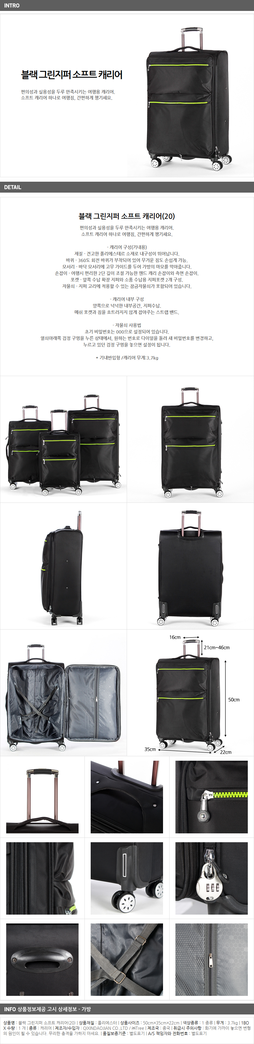 Medium Green Zipper Soft Carrier 20 Travel Luggage Black