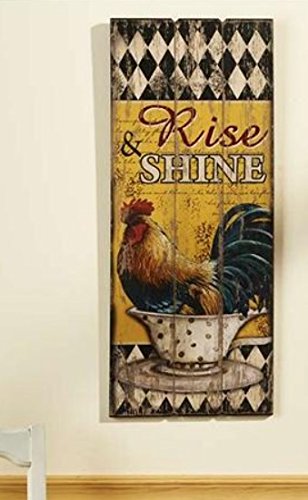 New Rise & Shine Rooster Wall Plaque Vintage Country Farm Kitchen Decor