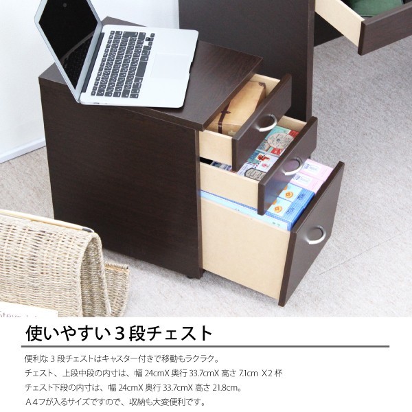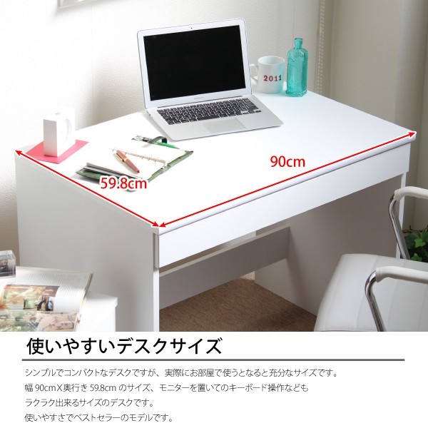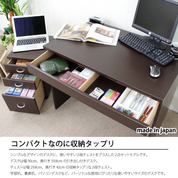 ■使いやすい幅90×奥行60(cm)デスクと3段チェストの2点セット