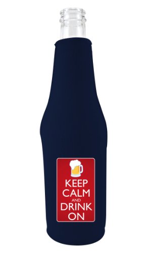 Coolie Junction Keep Calm Drink On Funny Bottle Coolie Navy Blue