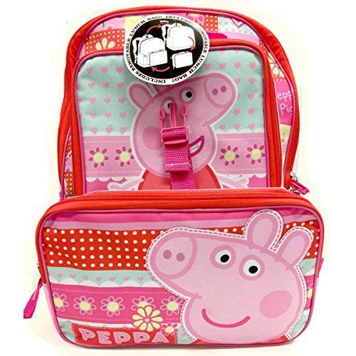 Studio : Zoofy International Publisher : Zoofy International Product Description Head back to school in style with this adorable Peppa Pig backpack! Large backpack measures 16" x 13" x 5". Includes a removable lunch bag! Features two side pockets and two zippered compartments for securely holding all your fun stuff. Officially licensed. 0