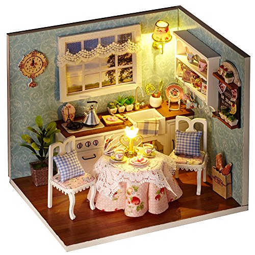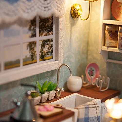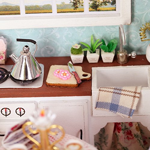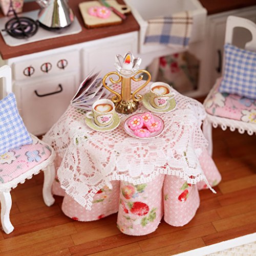 Specification: 1. Name: DIY Cabin Happy Kitchen 2. Material: Wood, cloth, plastic 3. Application: Decoration, gifts. 4. Size: 15.1*11.6*13.1cm / 5.95 * 4.57 * 5.16 in