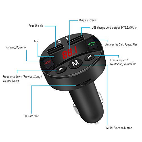 Using Bluetooth Function 1)Using the FM transmitter for the first time, you need to pair your smart device with it. 2)Plug the car charger of the FM transmitter into your car cigarette socket, the Bluetooth mark BL flashes means it's in pairing mode. 3)Turn on the Bluetooth function of your smart device, search for Bluetooth devices and select FM36 4)If paring is successful, the Bluetooth mark BL will stay on. 5)Tune the car FM radio frequency to a blank FM station. Then tune the FM transmitter into the same frequency with the car FM radio. 6)Now you can enjoy your music through the car stereo.