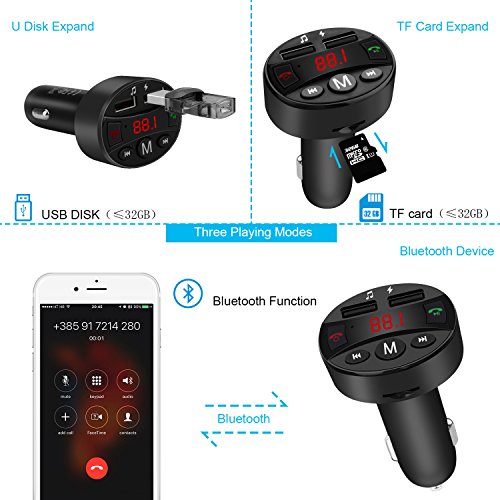 Audio Source Mode Switch When this FM transmitter is playing music from your U-disk, long Press M button for about 2 Seconds then play music from TF card (if TF card is inserted), long press M button for about 2 seconds once again and short press the button Pause play music from your smart device via Bluetooth ( if Bluetooth is paired)