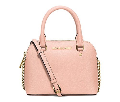 -. Brand : Michael Kors -. Color : pink -. Department : womens -. Feature : Saffiano leather; Double handles with 3-1/2" drop; adjustable strap with 20"-23" drop / Top zip closure; Exterior features 18k gold-plated hardware and signature lettering / Interior features 1 zip pocket and 1 slip pocket; A stylish mini version of the full-size Cindy satchel / 14" W x 9-1/2" H x 4-1/2" D / Silhouette is based off 5'9" model; Imported -. ProductGroup : Shoes -. ProductTypeName : HANDBAG -. Title : MICHAEL Michael Kors Cindy Mini Crossbody