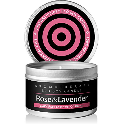 Rose & Lavender aromatherapy soy candles. 8 ounce (225g) tin.