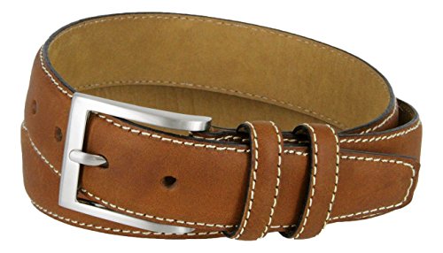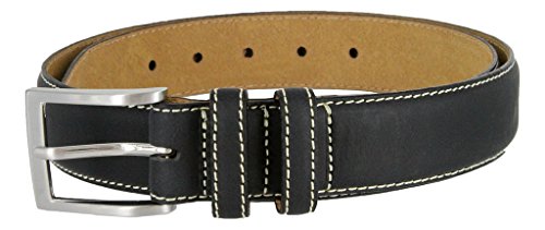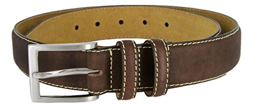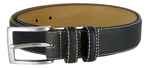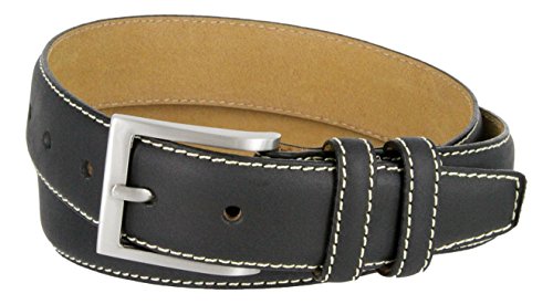 Binding : Apparel Product Description Classic dress belts with natural leather finishes in Black, Navy, Grey, Tan, or Brown. Heavy Stitches provide a contrast and further enhance this timeless design. Feathered and heavy stitched edges with a Solid metal Nickle-brushed silver finish buckle also heavy-stitched on with a matching color Double leather loop. Sizing: Measure Around where you wear the belt, with your pants on, and order that size. 0