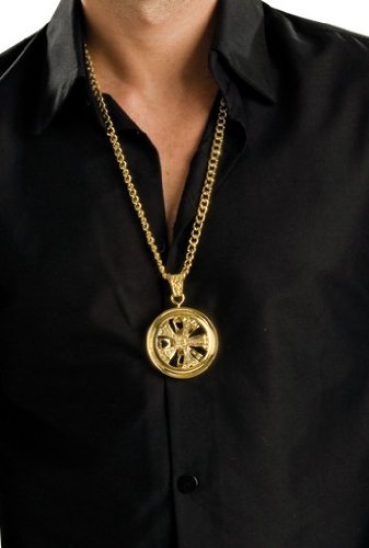 -. Binding : Apparel -. Brand : Rubie's -. Department : womens -. Feature : Gold colored chain with spinner medallion / Light weight and comfortable / One size fits most perfect for dress-up, role play, stage costuming witches, vampires, royalty, and more / Look to rubies for all your character accessory needs / Rubies costume company is a family owned business based in new york with more than 60 years of experience bringing children and adults the costumes and accessories they want to halloween and year-round dress up -. Genre : Jewelry -. IsAdultProduct : 0 -. Label : Rubies Costumes - Apparel -. Manufacturer : Rubies Costumes - Apparel -. ProductGroup : Apparel -. ProductTypeName : ADULT_COSTUME -. Publisher : Rubies Costumes - Apparel -. Studio : Rubies Costumes - Apparel -. Title : Rubie's Costume Hustlah Spinner Necklace