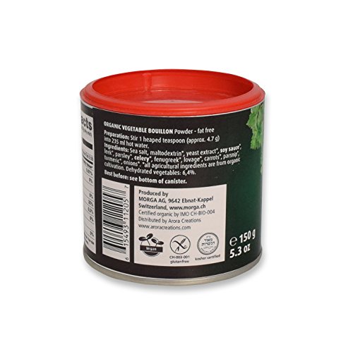 Morga USDA-ORGANIC Vegetable Bouillon Powder (5.3oz / 150g) (Veggie Broth / Stock / Base / Soup / Cubes / Herbs / Seasoning)