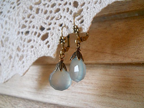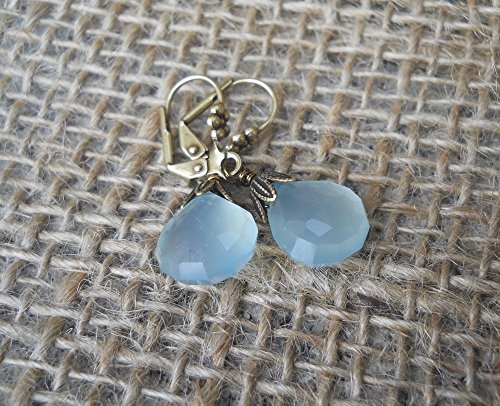 -. Title : Sea Blue Chalcedony Drop Earrings