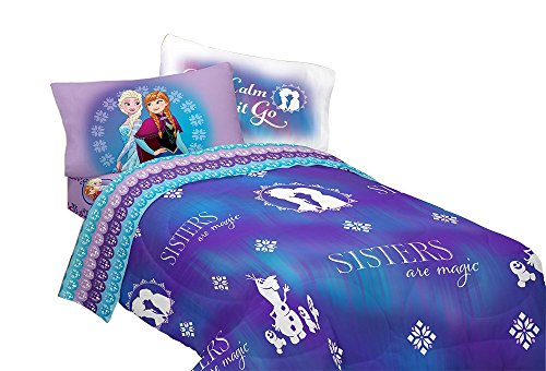 - Comforter features Elsa and Anna on a blue hombre ground