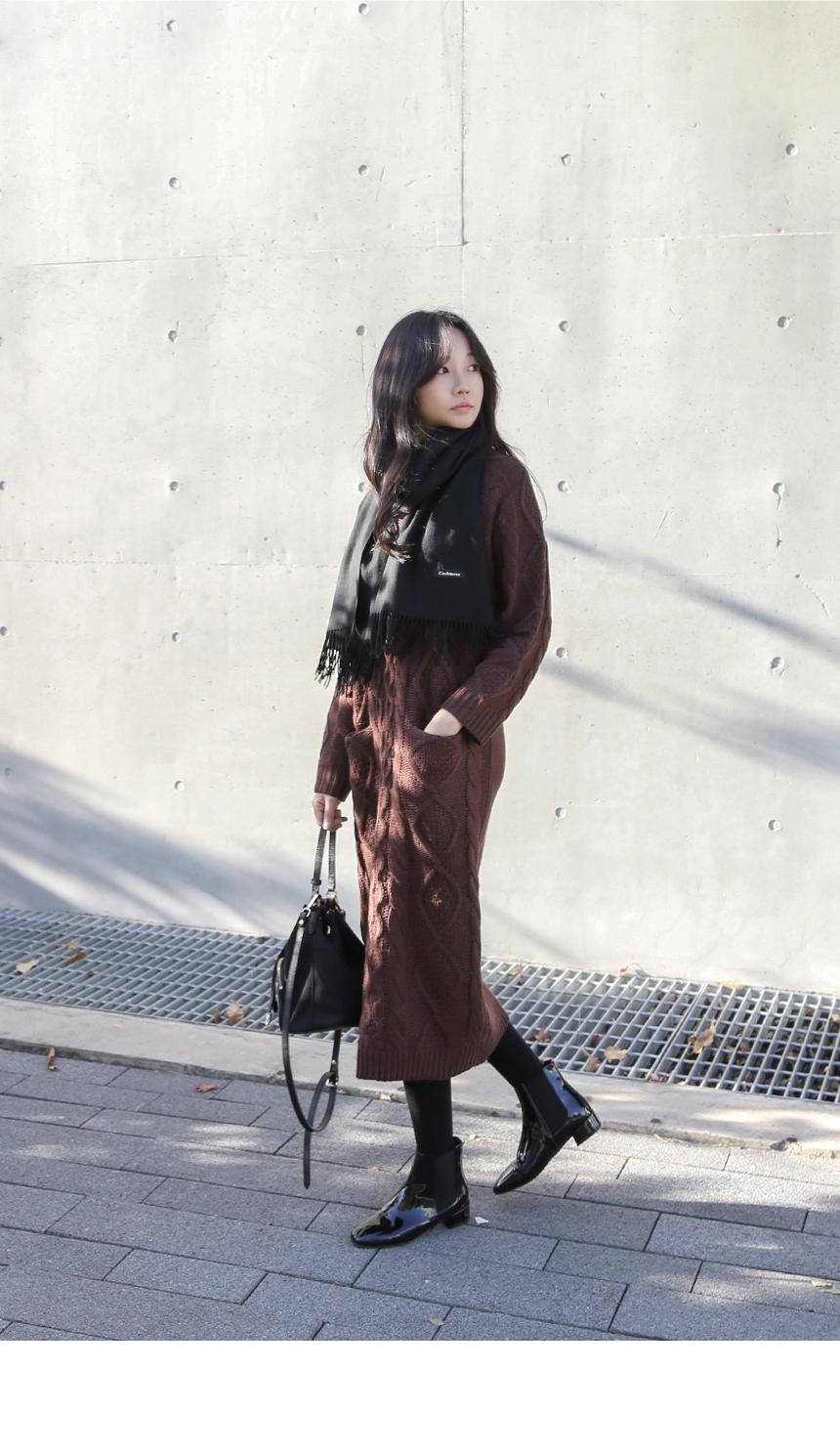 편안한 무드의 롱 꽈배기 니트 원피스