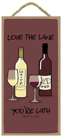 (SJT73109) Love the wine you're with 5" x 10" Wood Sign featuring the artwork of Wine Is Life