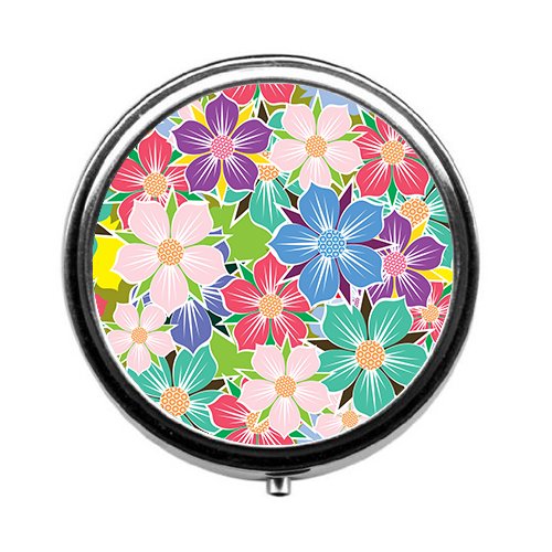 Colorful beautiful Floral Round pill box/pill case-• 3 Compartments for Keeping Pills Separate pill box/pill case