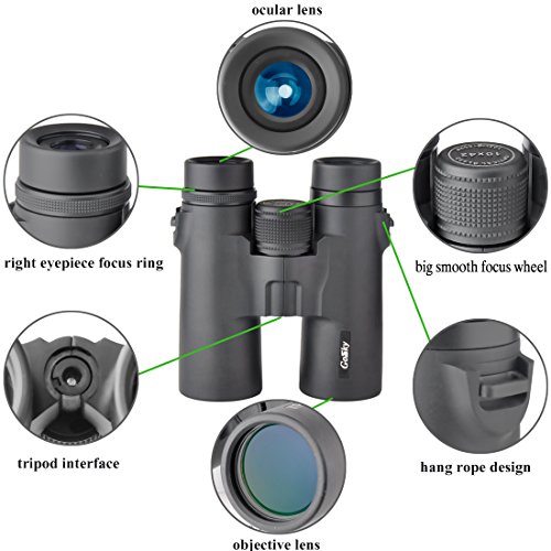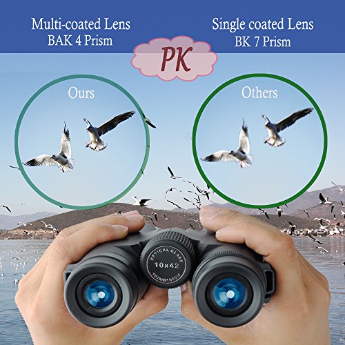 10x42 Binoculars for Bird Watching Travelling Landscape Stargazing Hunting Concerts Sports and Outdoor Games-BAK4 Prism Bright and Clear Optics- With Smartphone Digiscoping Adapter Strap Carrying Case
