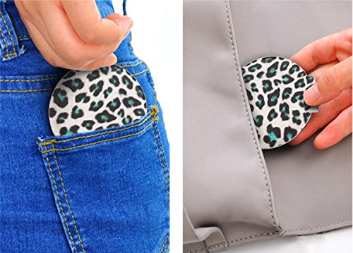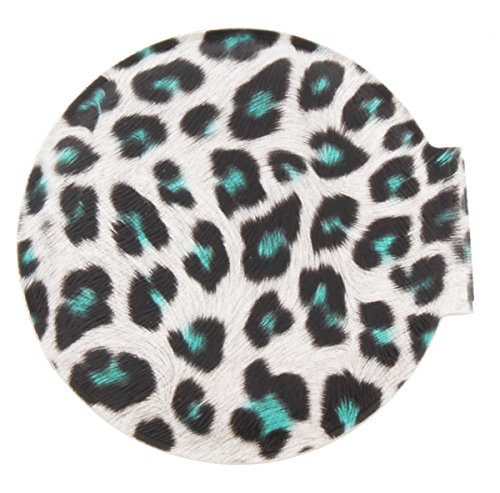 Pocket Mirror - Small Mini Round Womans Compact Stylish Cosmetic Makeup Travel Purse Mirror -Teal Leopard Print - 3.5 diameter x 0.25H inches